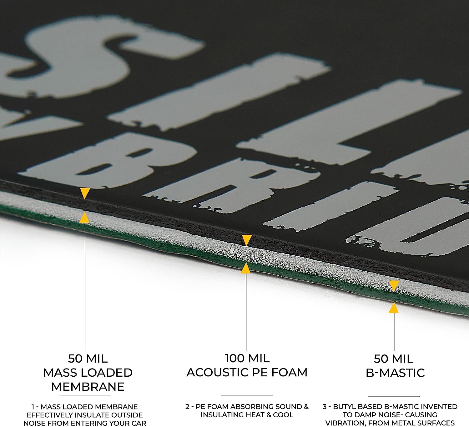 Siless Hybrid 3 in 1 200 mil (5mm) 100 sqft Car Sound Deadening mat - Butyl Automotive Sound Deadener - Noise Insulation and Vibration Dampening Material