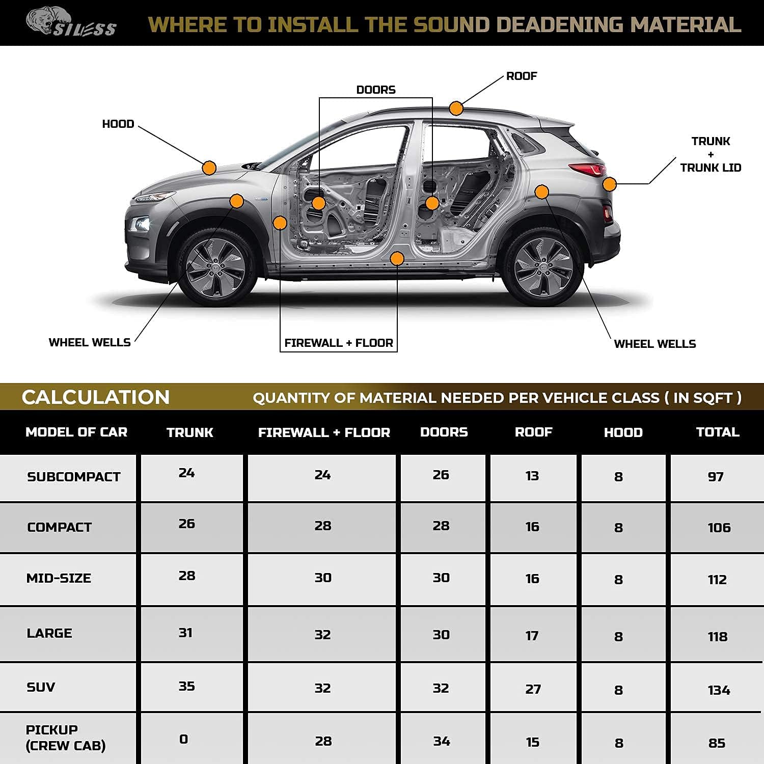 Siless Hybrid 3 in 1 200 mil (5mm) 50 sqft Car Sound Deadening mat - Butyl Automotive Sound Deadener - Noise Insulation and Vibration Dampening Material